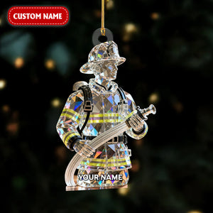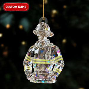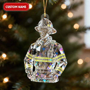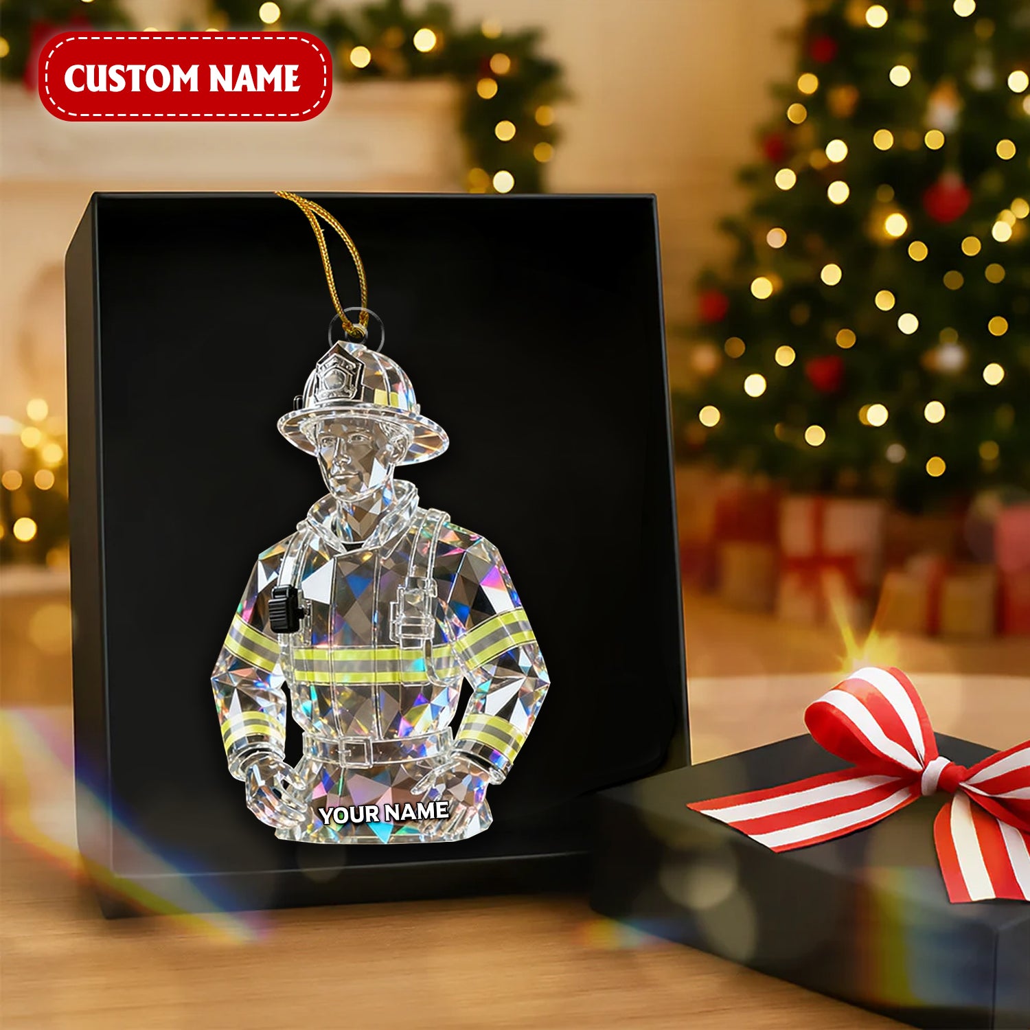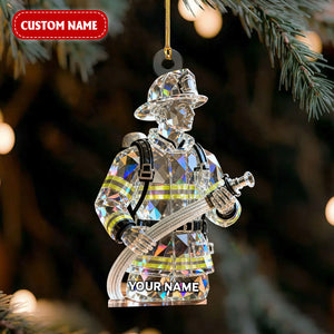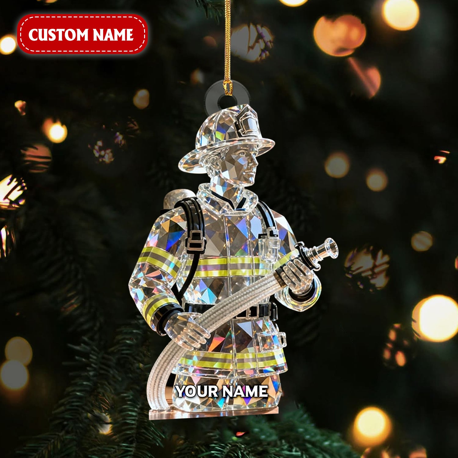 Custom Firefighter Crystal Light Effect Acrylic Ornaments, Career Ornaments, Acrylic Christmas Ornaments