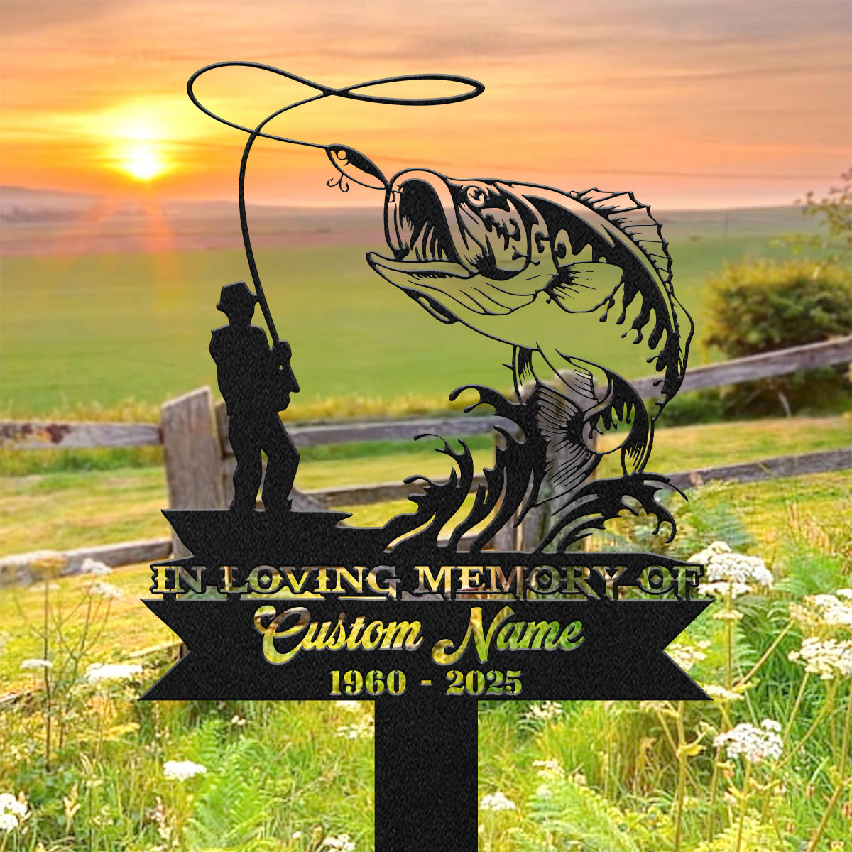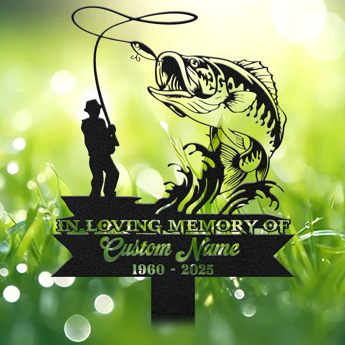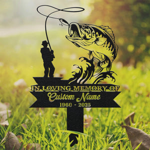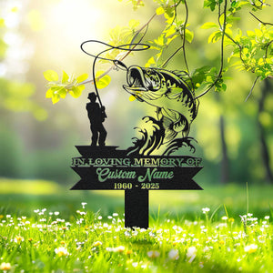 Custom Fishing Metal Memorial Plaques, In Loving Memory Sign, Laser Cut Metal Signs, Metal Garden Stakes