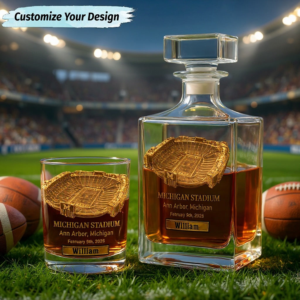 Custom Football Stadium Whiskey Decanter Set, Luxury Whiskey Glass, Gift Ideas For Football Fans
