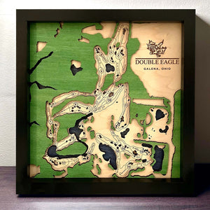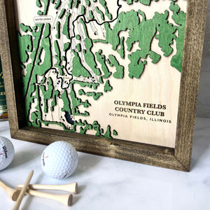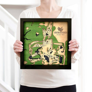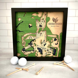 This is a custom golf course map of any course in the world! The maps are made by layering three pieces of wood to give the dimension of water/sand traps, the course map and the trees with the option of a custom made frame. Makes a great golf gift for golfers that would like a wooden golf course map, layered golf course wood map, custom golf picture or engraved golf map.