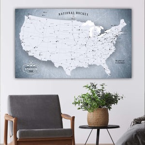 Custom Hockey Stadium Tour Map Canvas Wall Art, Gift For Hockey Lovers