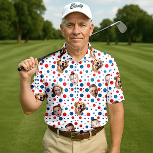 Custom Independence Days Shirts With Faces, Men's Fourth Of July Shirt, Men's Golf Polo Shirt