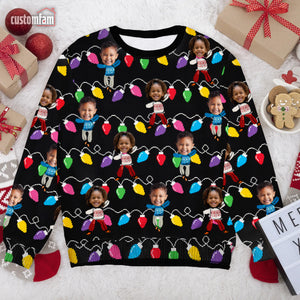 Add a personalized touch to holiday hilarity with our Custom Kids Pictures Ugly Christmas Light Sweater! This unique and funny Christmas sweater lets you showcase your kids’ faces in a playful design that’s sure to light up the room—literally and figuratively. With whimsical holiday lights surrounding your custom photos, it’s the perfect way to bring a little extra cheer to your holiday festivities.