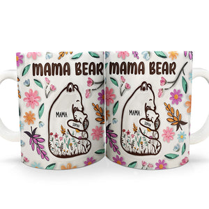 Custom Mama Bear Floral Style Mugs, 3D Inflated Effect Printed Mug, Gift For Mom, Grandma