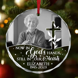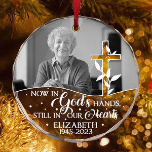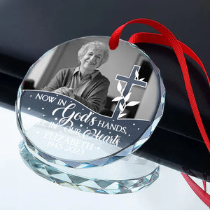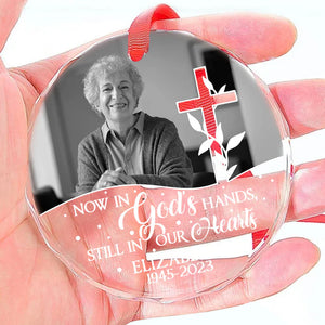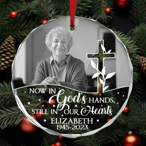 Now In God's Hands, Still In Our Hearts ,Custom Memory Christmas Glass Ornament