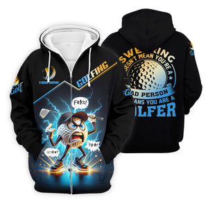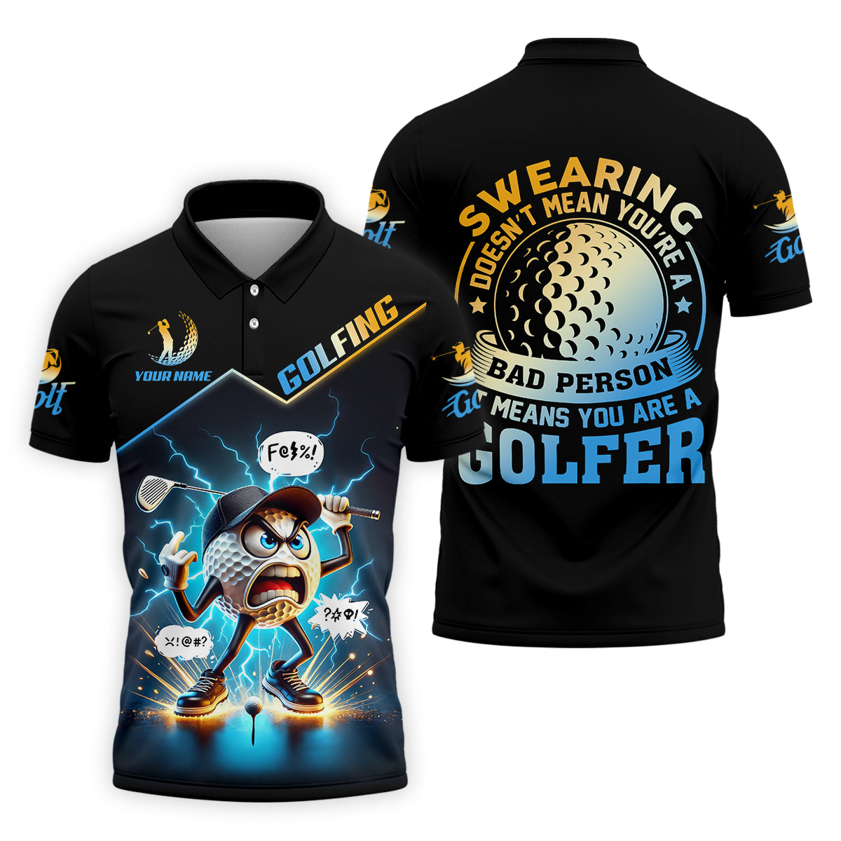 Meet the Swearing Doesn't Mean You're A Bad Person Custom Men's Golf Polo Shirt, Dad Golf Gift – a shirt so bold it makes argyle cry in the corner. Designed for golfers who'd rather make a fashion statement than follow dress codes, this polo is your ticket to turning heads, raising eyebrows, and maybe distracting your buddies just enough to win a few holes. (We’re not saying it’s cheating... we’re saying it’s strategy.)