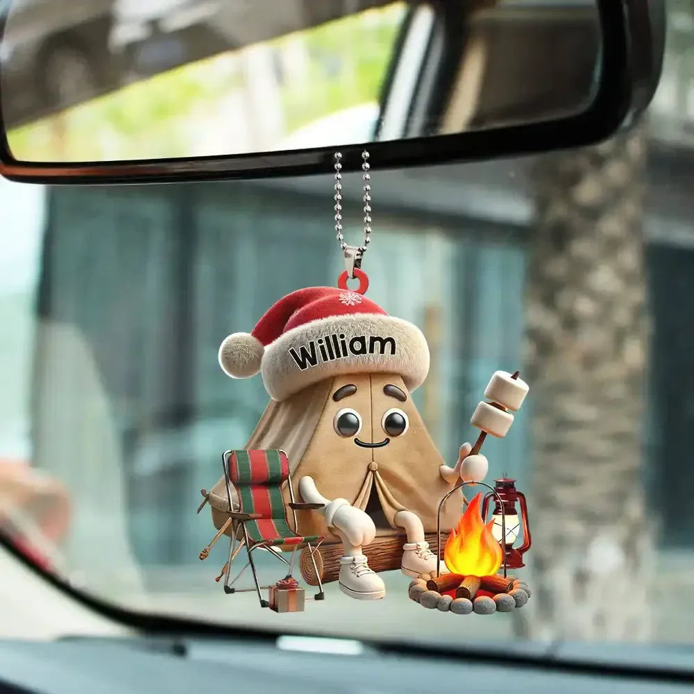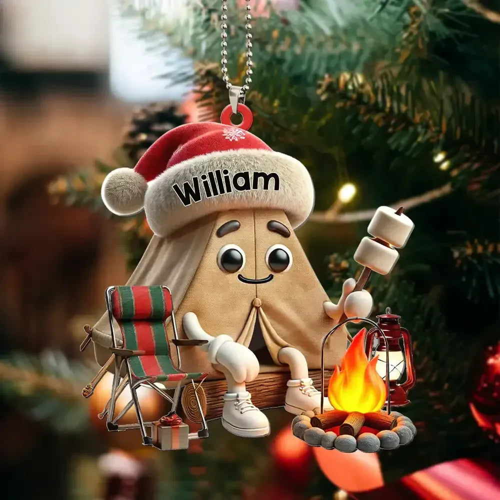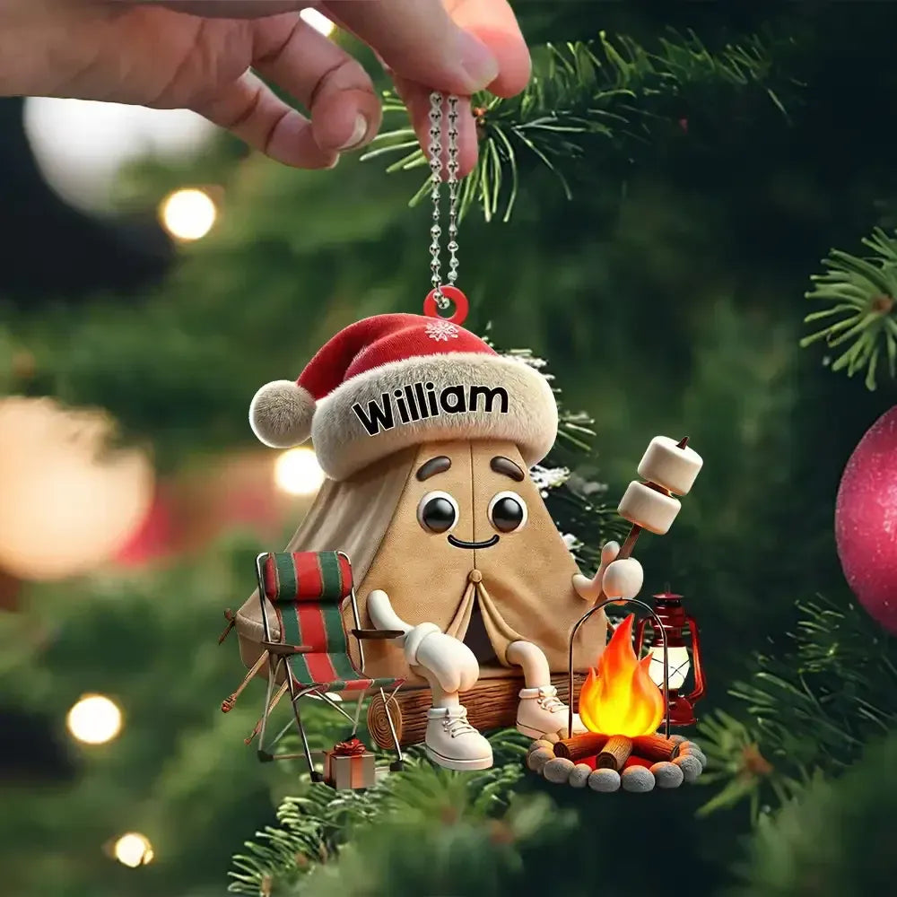 Custom Name Cartoon Camp Acrylic Ornament, Camping Lover Unique Christmas Ornaments