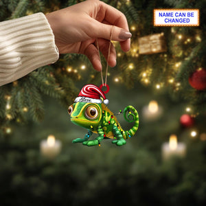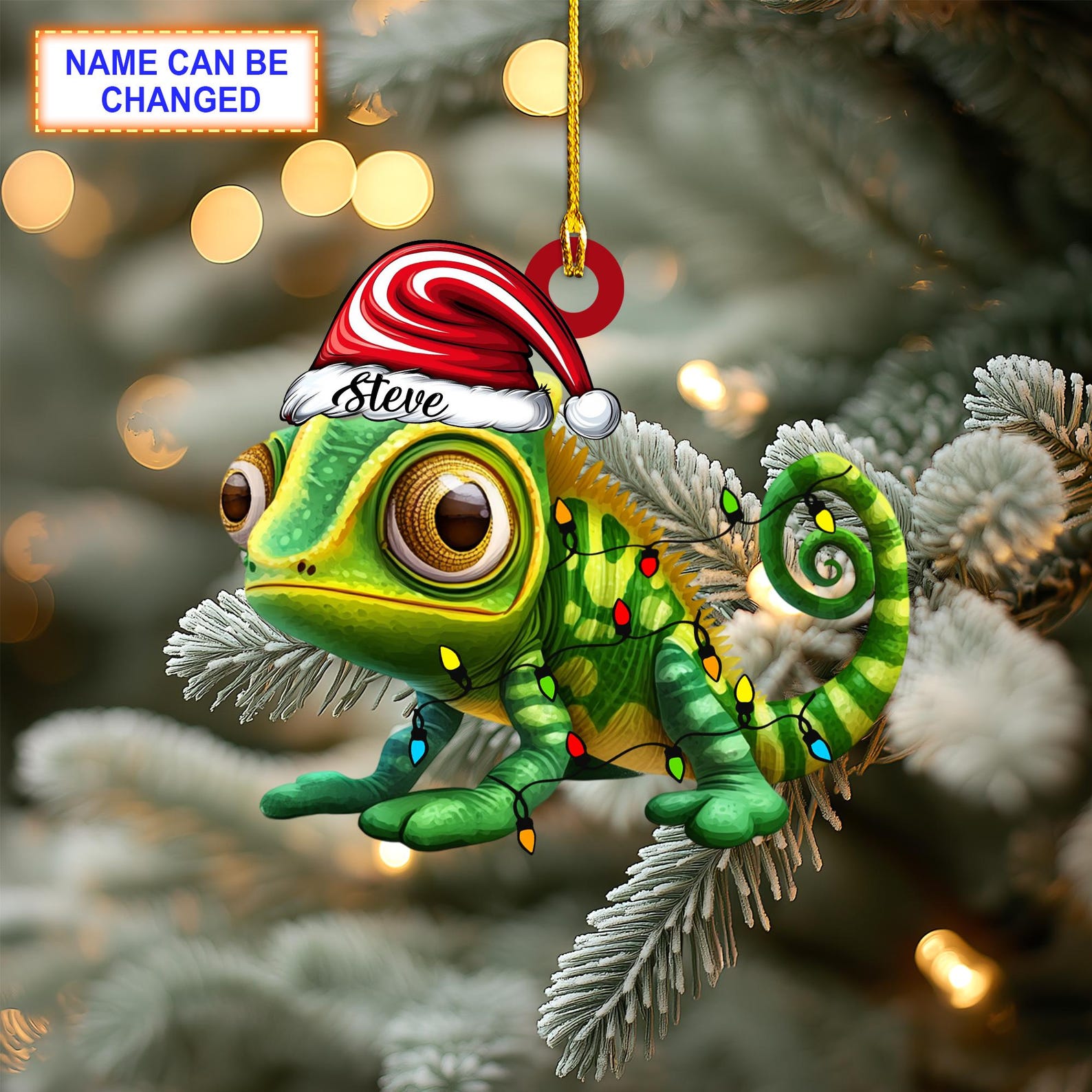 Christmas Chameleon Ornament, Christmas Tree Decoration, Acrylic Ornament, Christmas Ornament