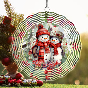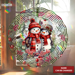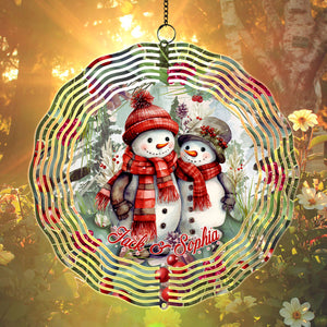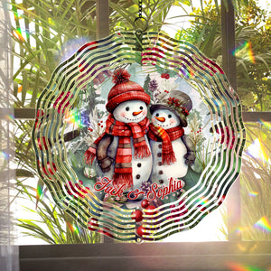 Custom Name Snowman Christmas Double Sided Metal Wind Spinner, Yard Art, Garden Decor