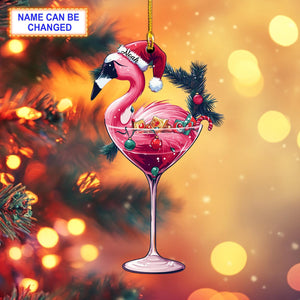 Flamingo With Santa Hat Ornament, Christmas Tree Decoration, Acrylic Ornament, Christmas Ornament