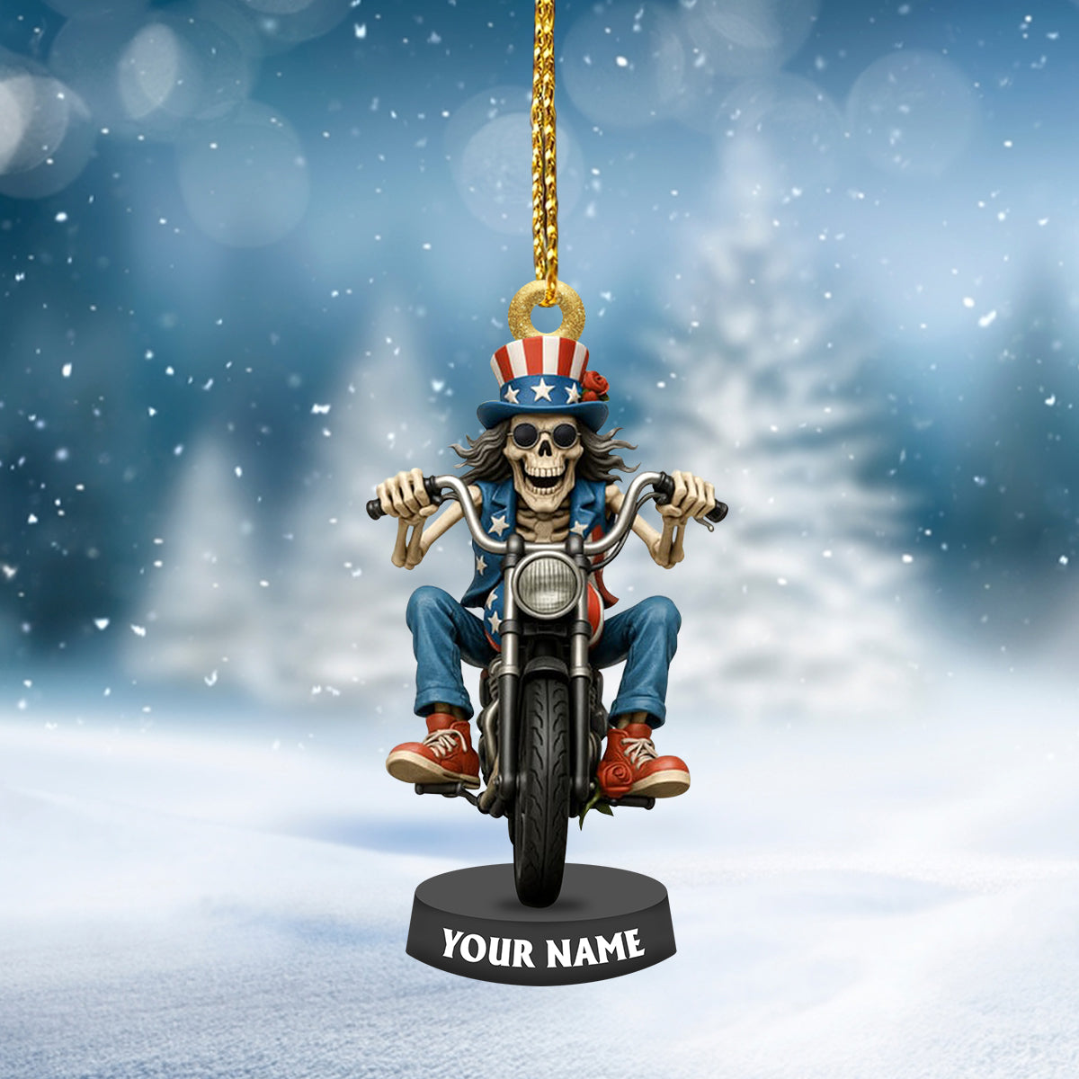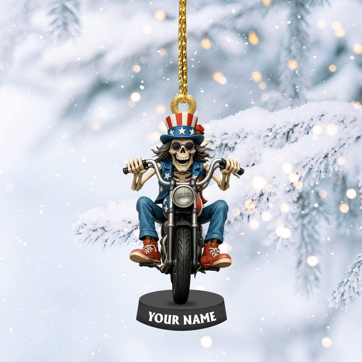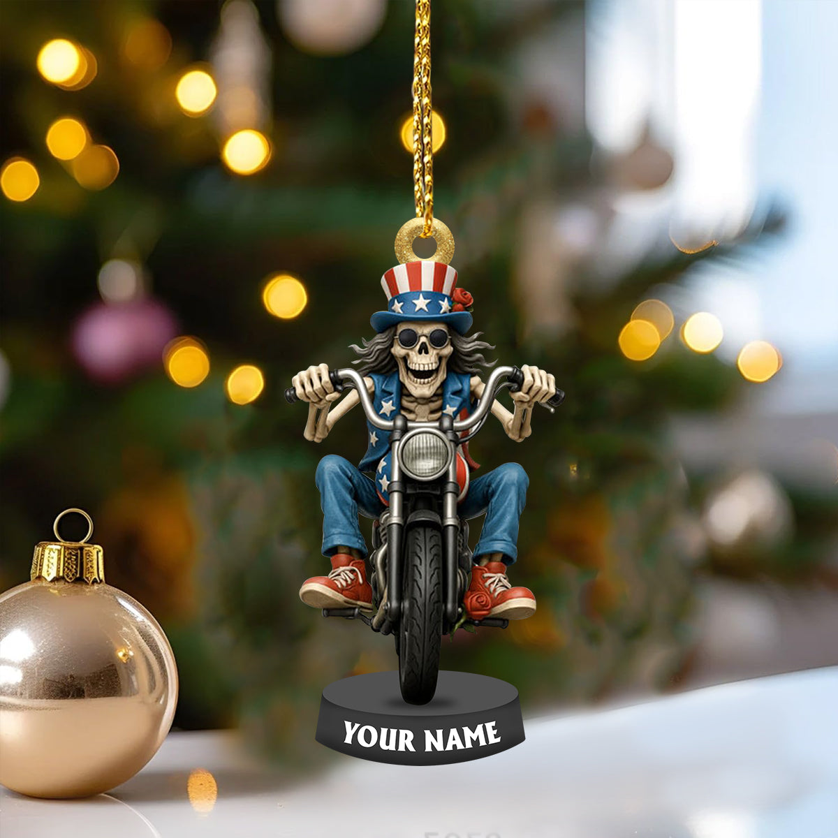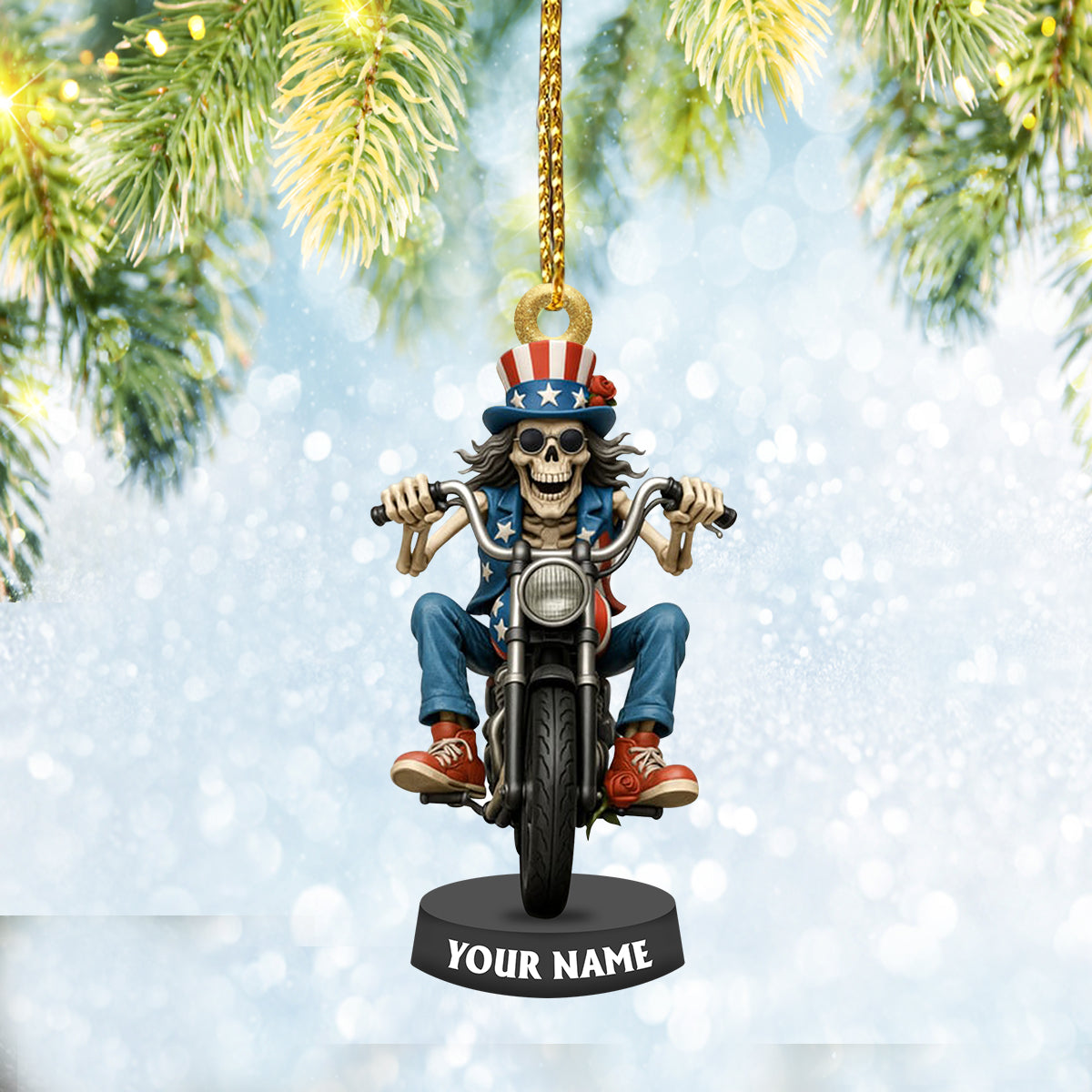 Custom Name Funny Skeleton Riding Motor Deadhead Acrylic Ornament, Rock Ornament, Gift For Rock Lovers