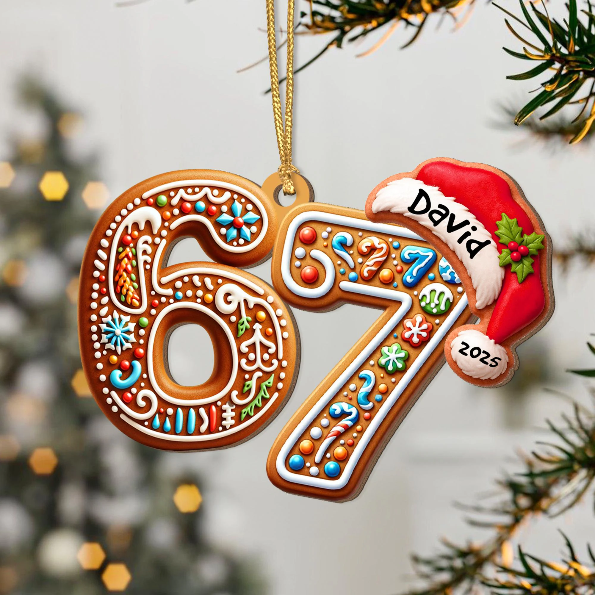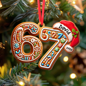 Custom Name Funny Slang Six Seven Meme Gen Alpha Humor Gingerbread Christmas Acrylic Ornament