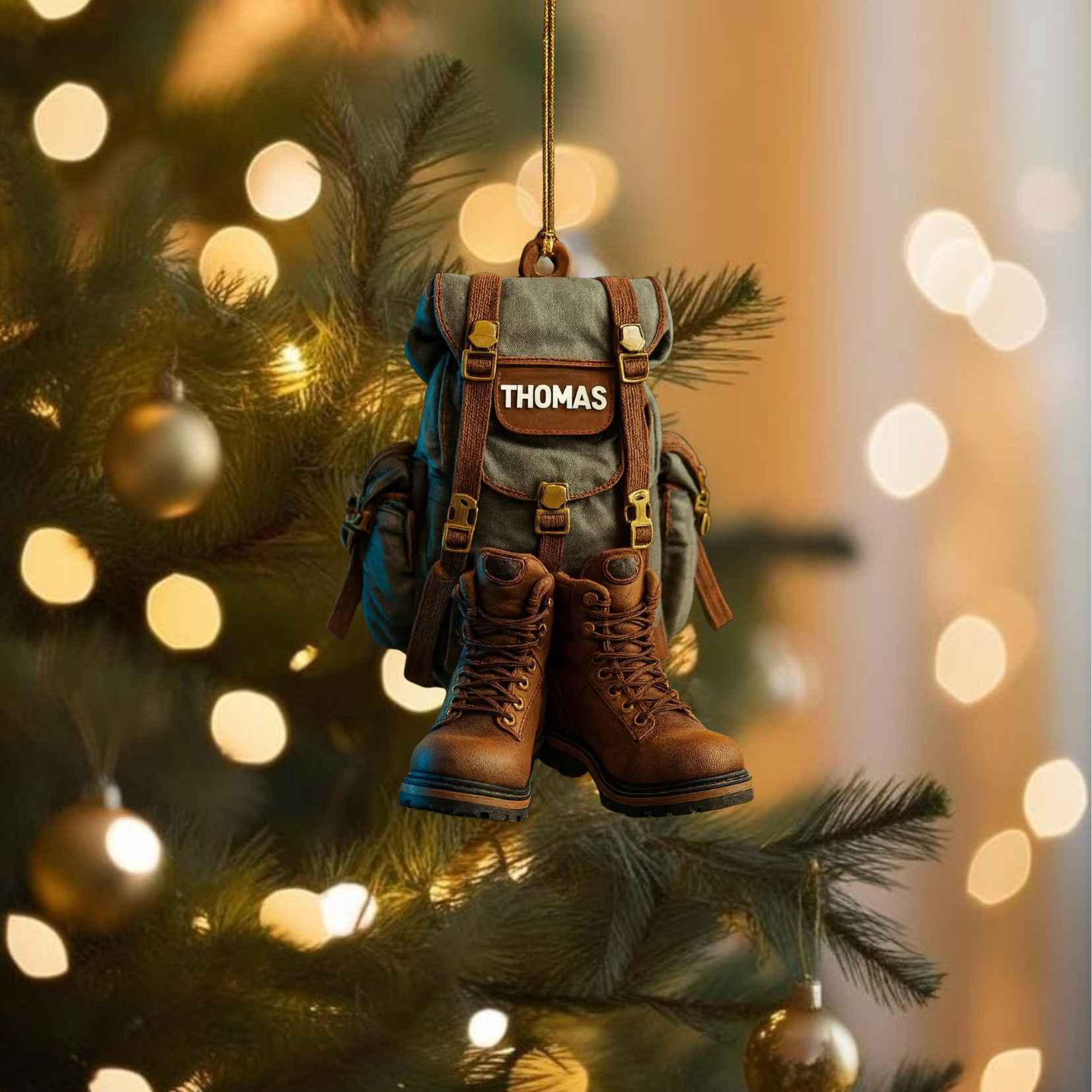 Custom Name Hiking Acrylic Ornament, Camping Lover Unique Christmas Ornaments