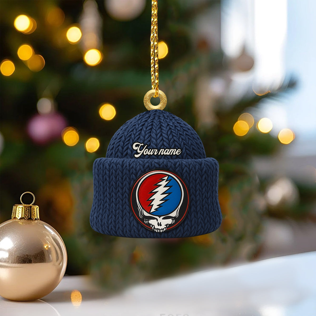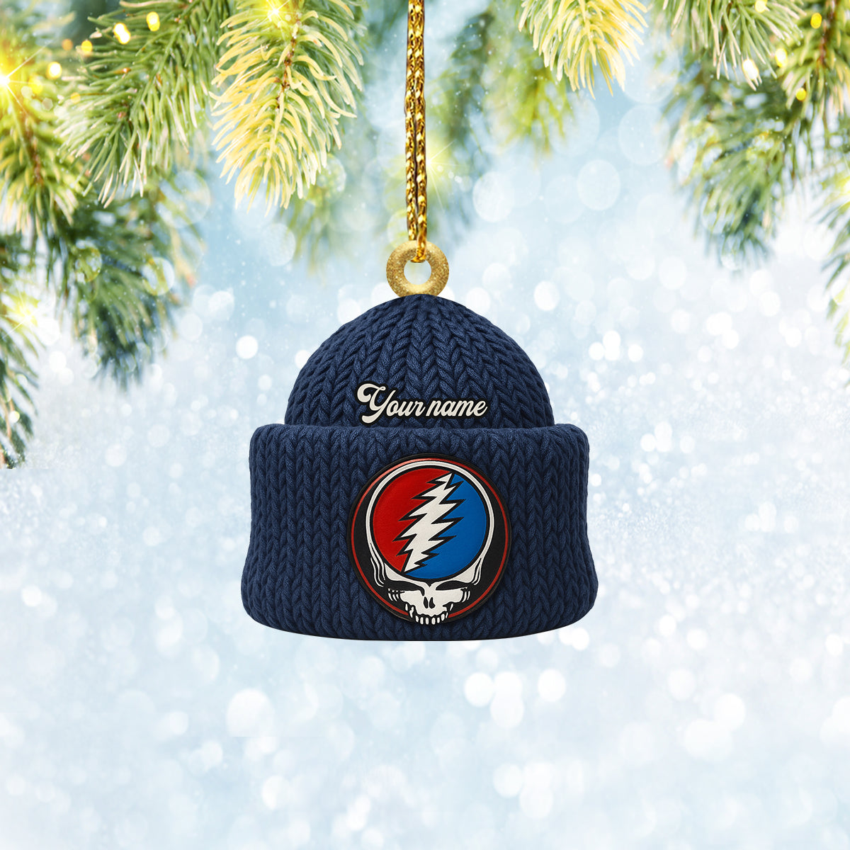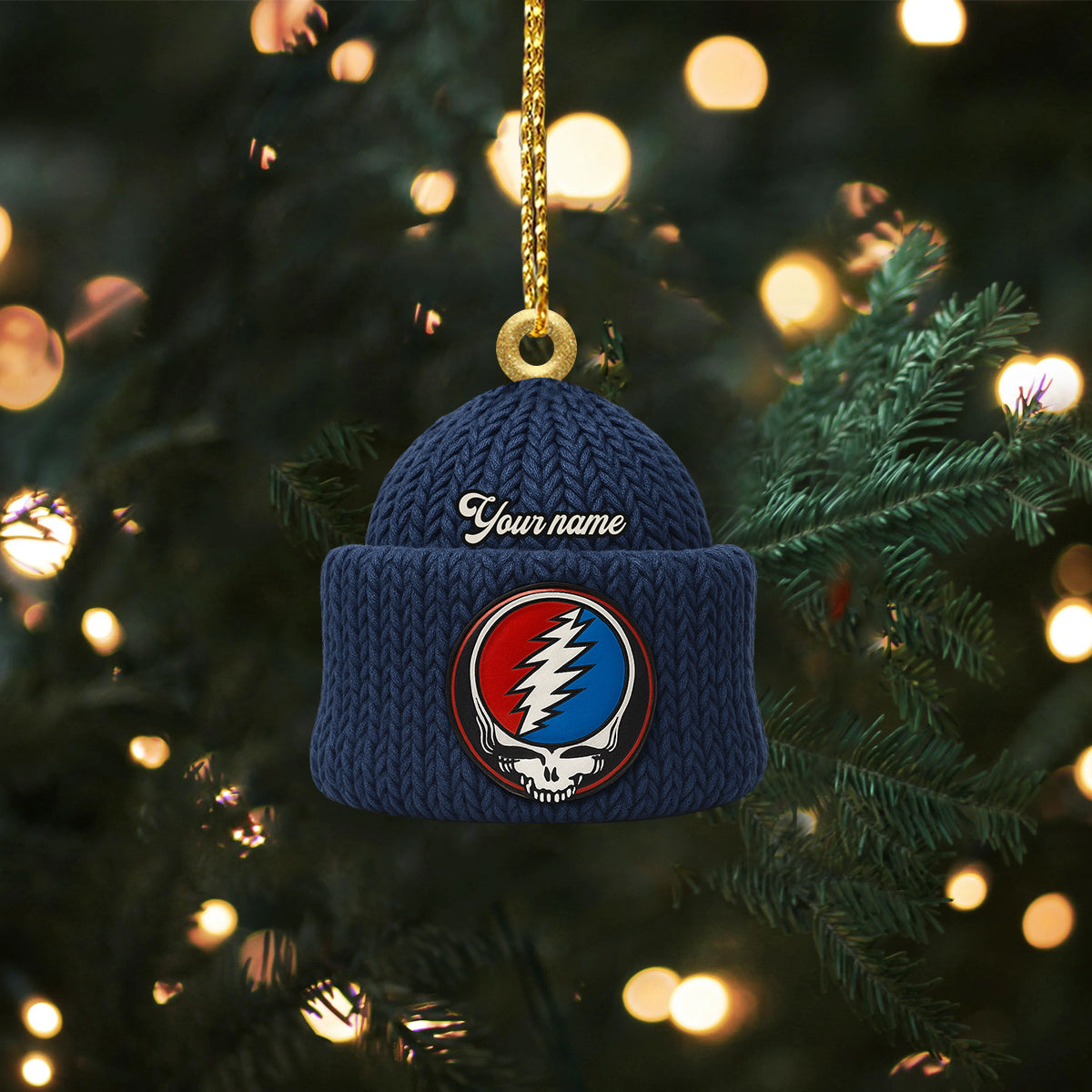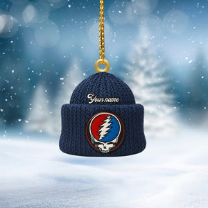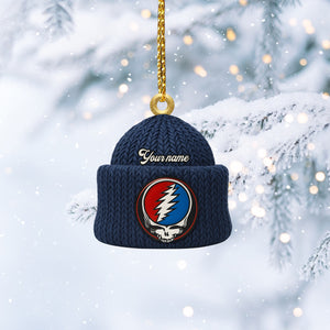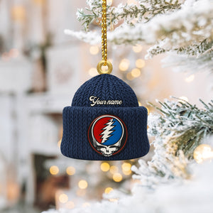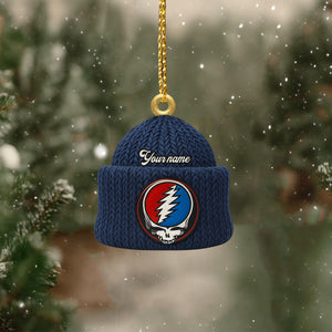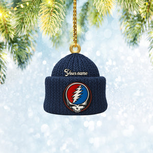 Custom Name Lightning Bolt Skull Navy Beanie Deadhead Acrylic Ornament, Rock Ornament, Gift For Rock Lovers