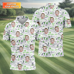 Custom Photo Men's Golf Polo Shirt, Funny Dad Golf Gift