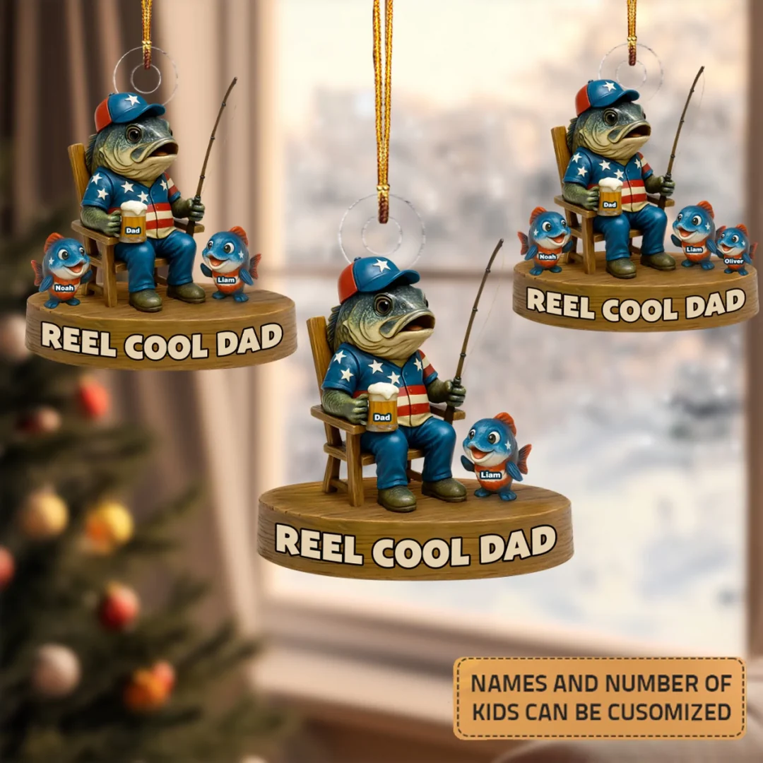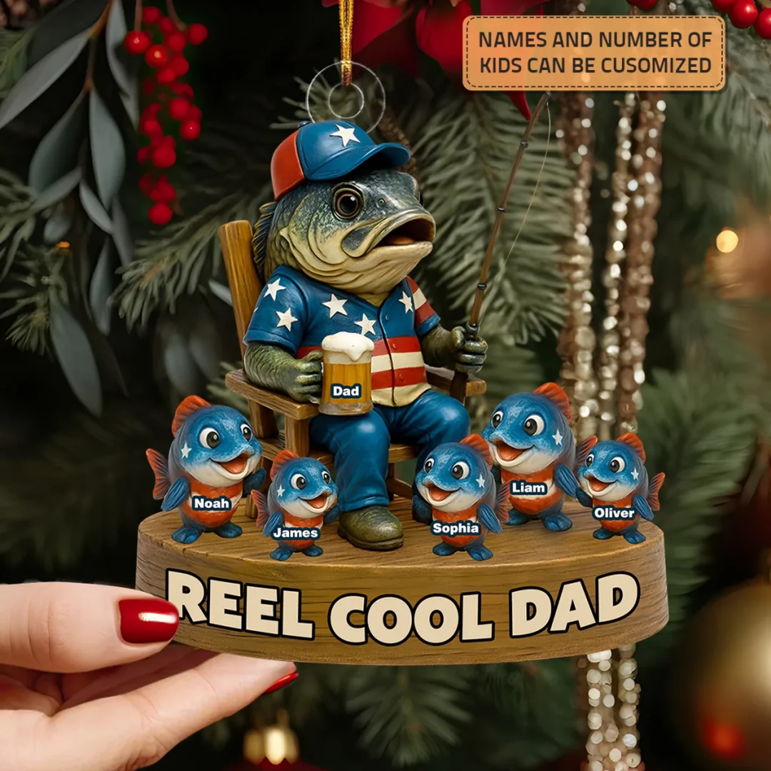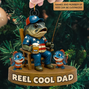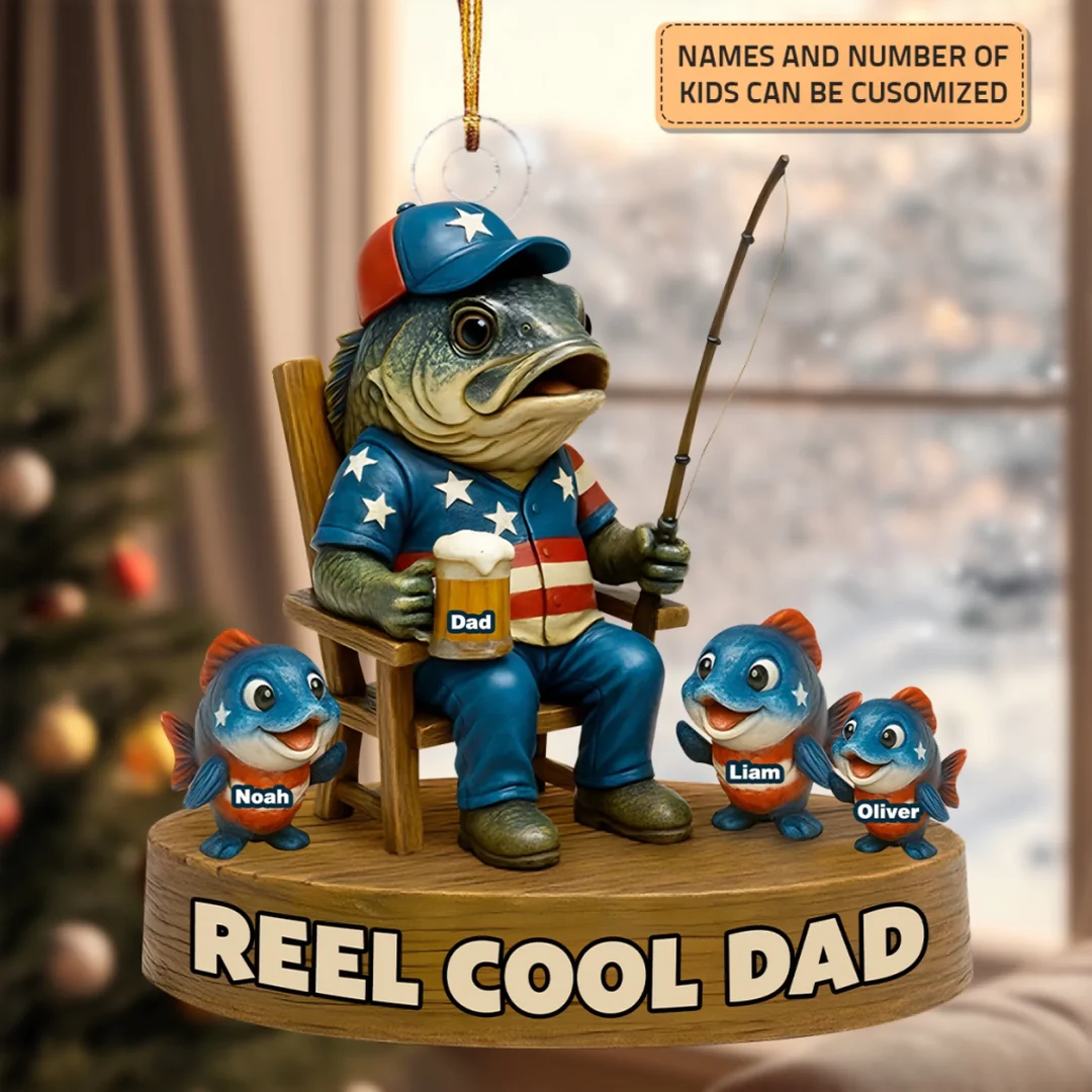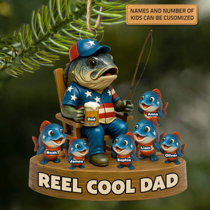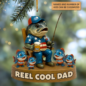 Custom Name Patriot Fishing Dad Acrylic Ornaments, American Flag Ornament, Fishing Beer Funny Ornament