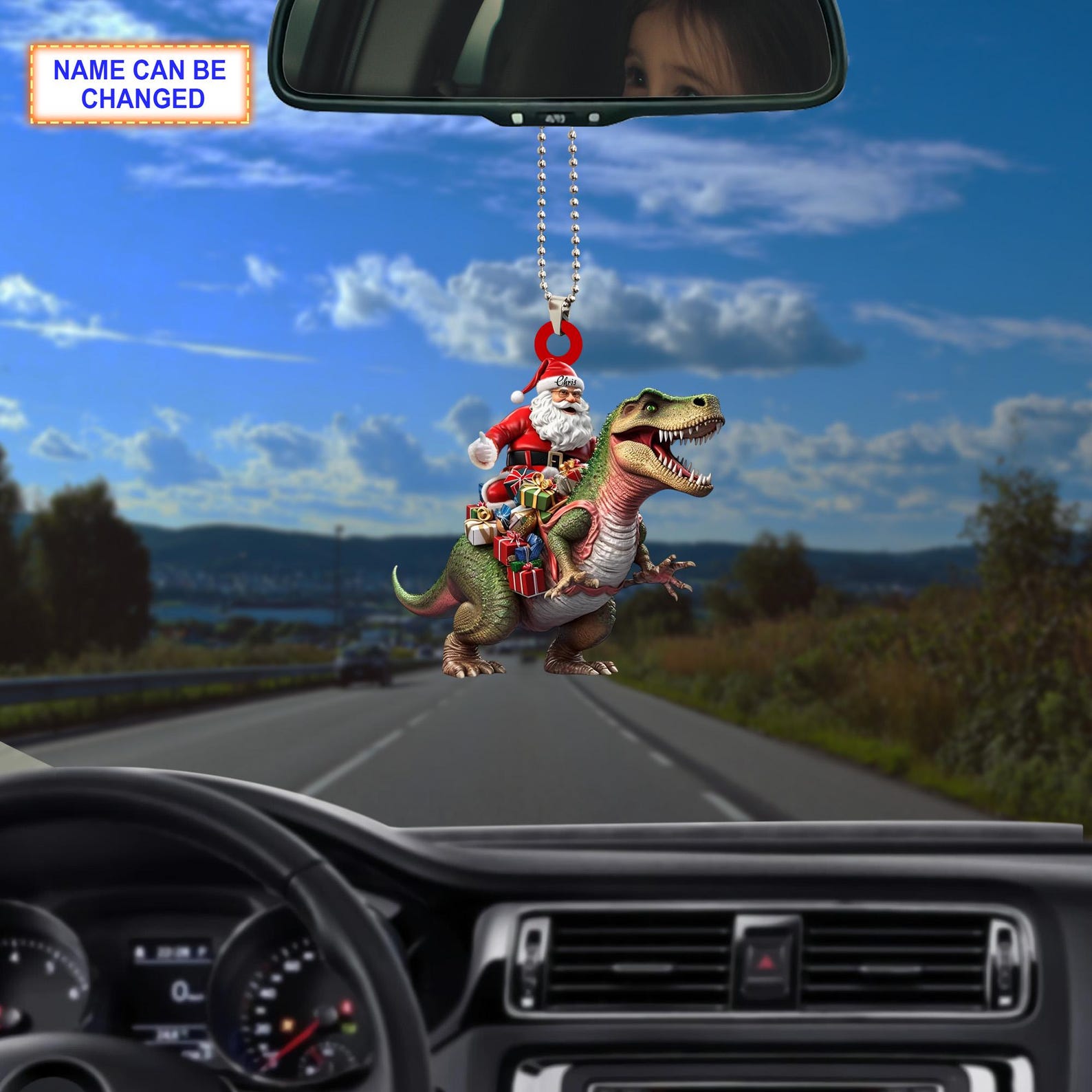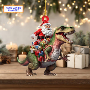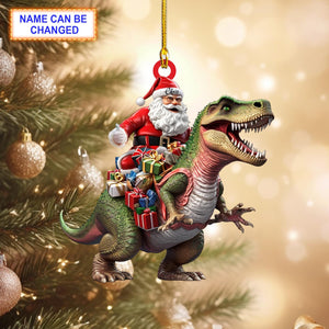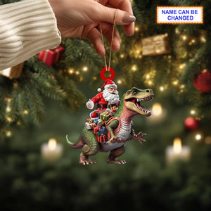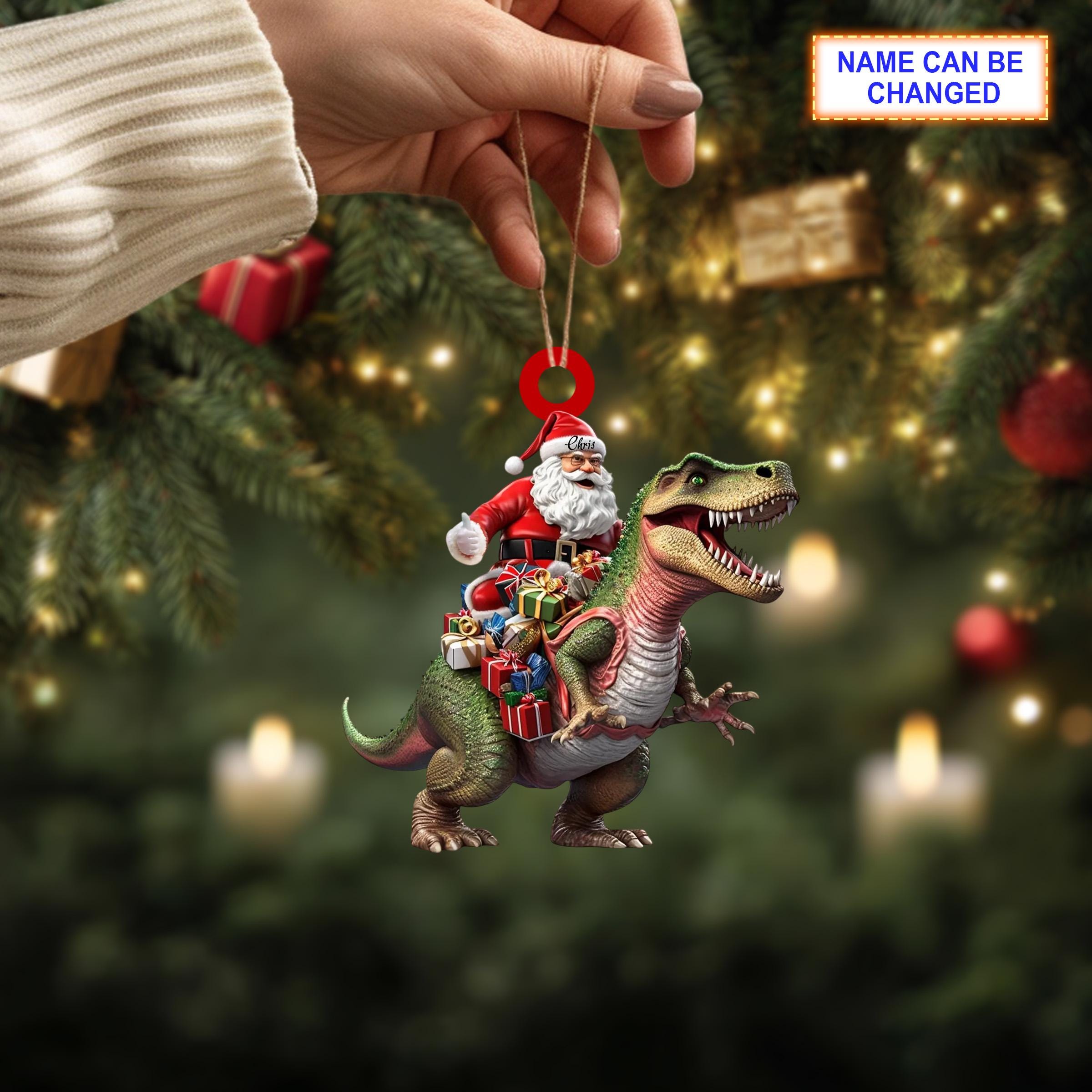 Santa Riding Dinosaur Ornament, Christmas Tree Decoration, Acrylic Ornament, Christmas Ornament