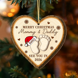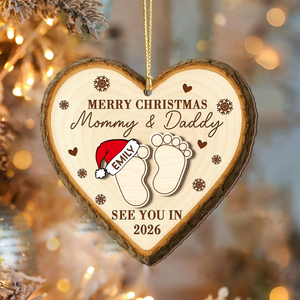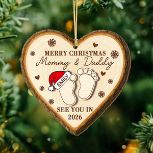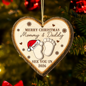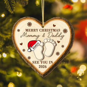 Custom Name See You In 2026 Parents-to-be 2 Layered Wooden Ornament, Christmas Family Ornament, Expecting Mom Gift