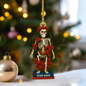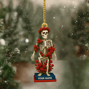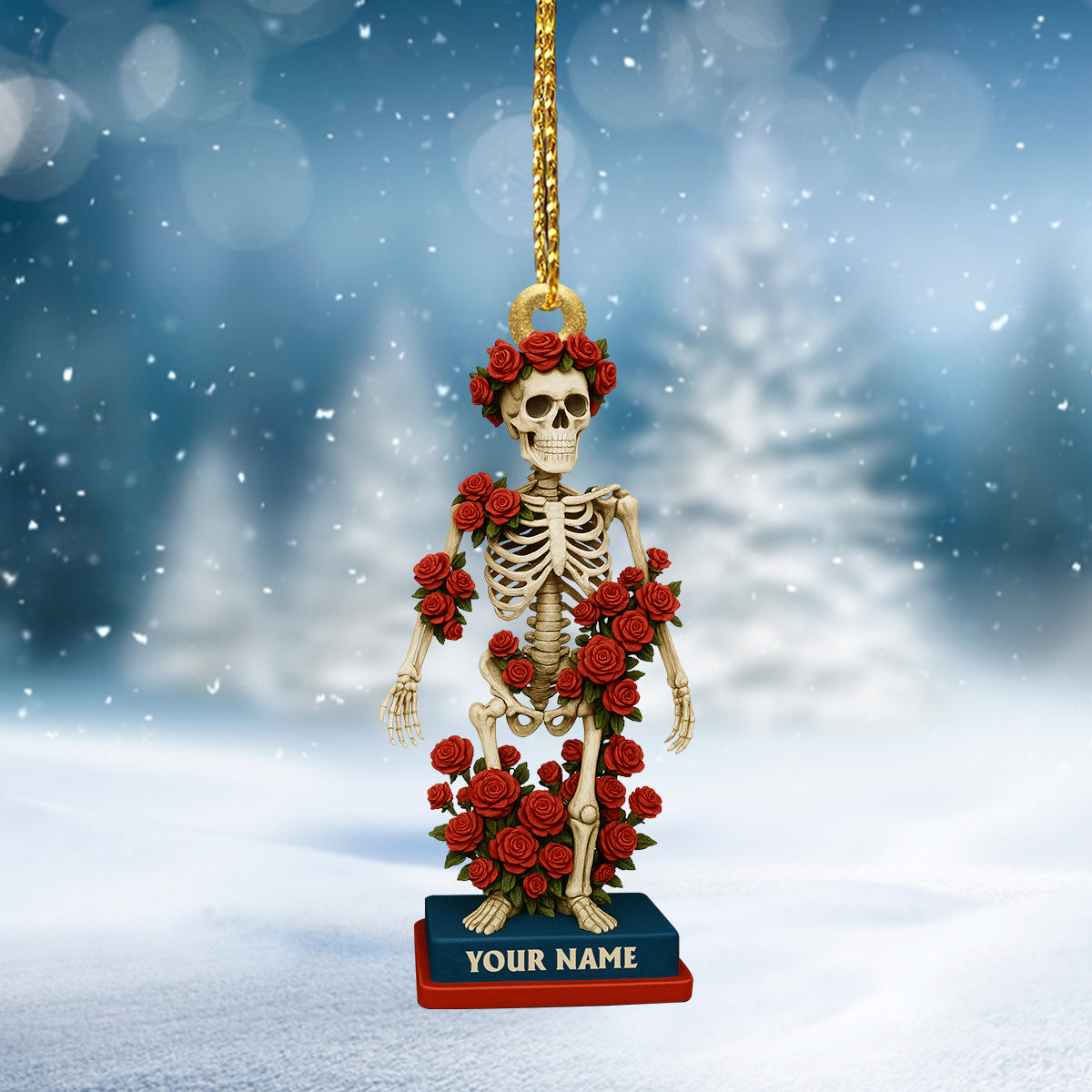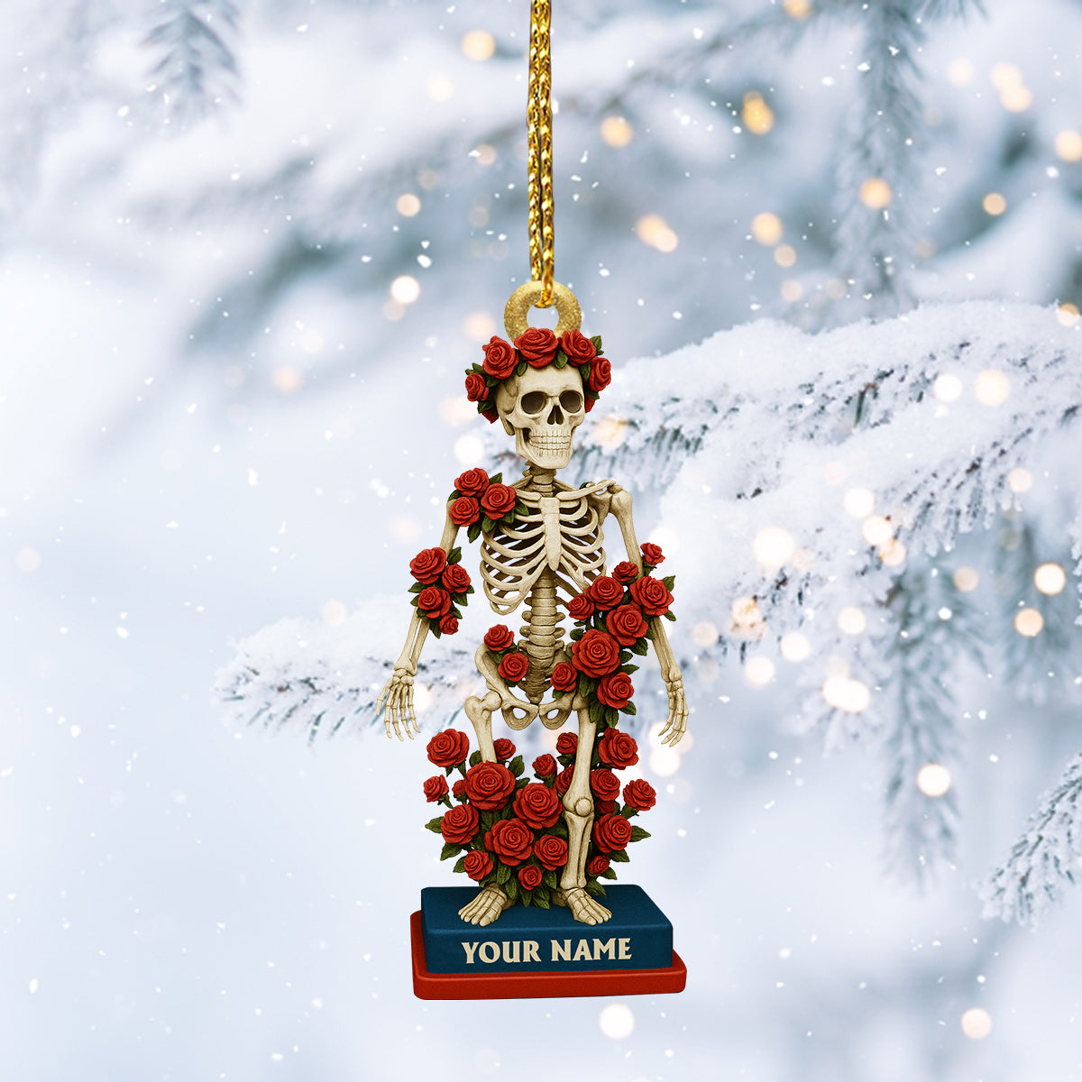 Custom Name Skull And Roses Deadhead Acrylic Ornament, Rock Ornament, Gift For Rock Lovers