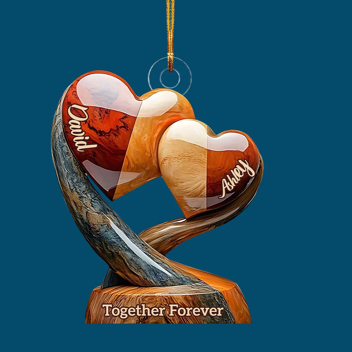 Custom Name Two Hearts Acrylic Ornaments, Couple Anniversary Gift, Christmas Gift For Couple