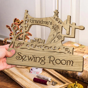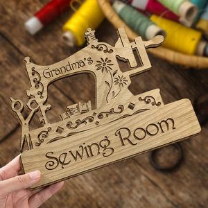 Custom Name Wooden Engraved Sewing Room Sign, Gifts For Sewers