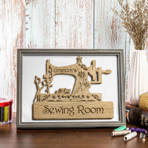 Elegant Design: The sign features intricate engraving that showcases your love for sewing. With detailed motifs like spools of thread, scissors, needles, and more, the design beautifully captures the essence of a creative sewing space.