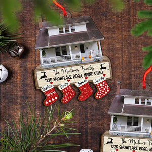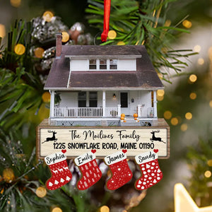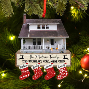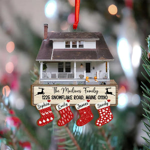 Custom New House Photo Ornament, Family Christmas Stocking Ornament with Names