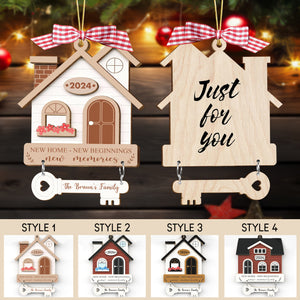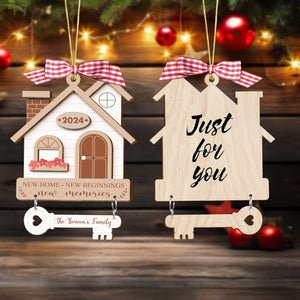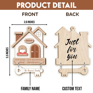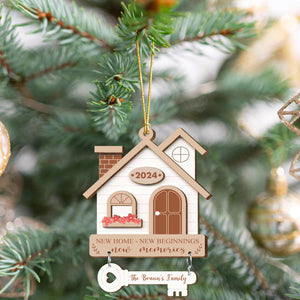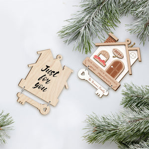 Celebrate the joy of a new home with our Personalized New Home Ornament, a charming, handcrafted keepsake designed to capture memories of this special milestone. This wooden ornament features a house shape with intricate details and an elegant "2024" date plaque, symbolizing new beginnings. Each piece includes a customizable key that can be personalized with the family name, making it a unique and thoughtful gift.
