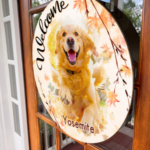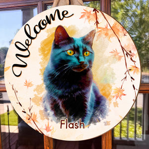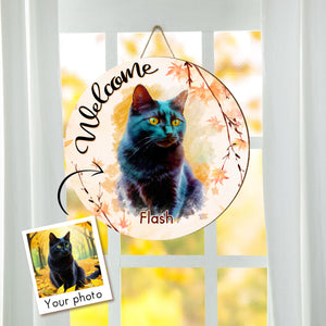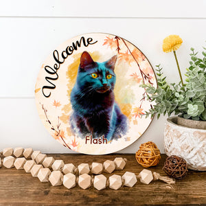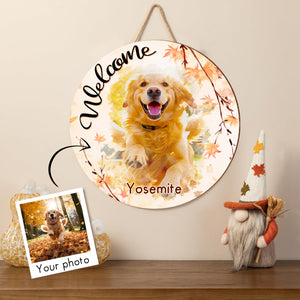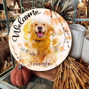 Celebrate the season and your furry friend with this Custom Pet Portraits Watercolor Autumn Welcome Door Sign—a timeless and heartfelt way to bring joy and warmth into your home.