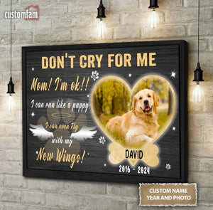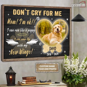Personalize Photo Canvas Prints, Dog Memorial Gift, Dog Loss Gifts, Gift For Dog Lover, Don't Cry For Me Canvas