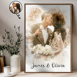 Custom Photo Couple Portrait Watercolor Canvas Wall Art, Gift For Couple