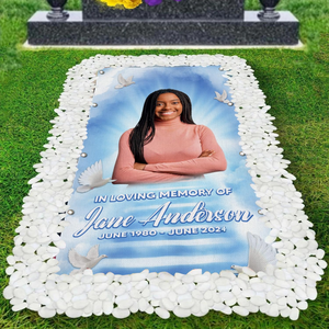 HIGH QUALITY MATERIAL: Made from Heavy Duty material, weather-waterproof and UV resistant material.Durable outdoor use; It can last through all seasons(possibly longer).Our custom memorial grave blankets DO NOT INCLUDE ROCKS/STAKES OR ACCESSORIES.