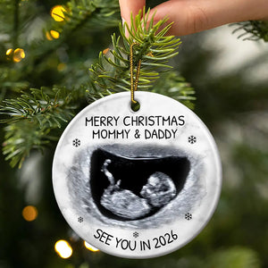 Custom Photo Parents-to-be Ceramic Ornament, Xmas Decor Personalized Ornament, Bundle of Joy Photo Ornaments
