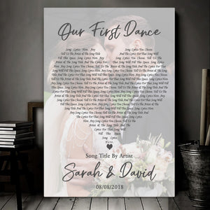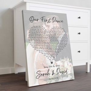 Custom Portrait Photo Music Wall Art With Song Lyrics, First Dance Wedding