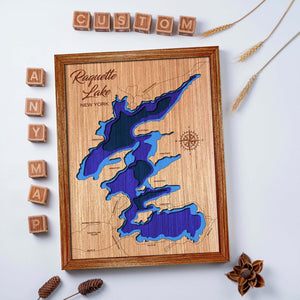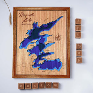 Custom Raquette Lake New York Topographical Map, 3D Lake Map, Lake House Decor