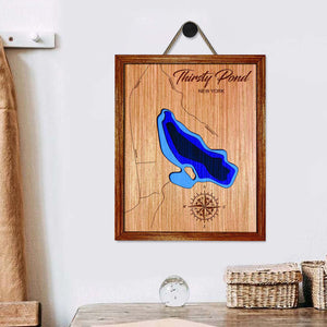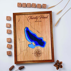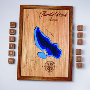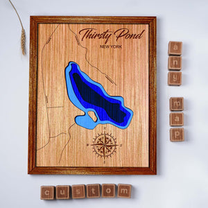 Custom Thirsty Pond New York Topographical Map, 3D Lake Map, Lake House Decor