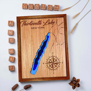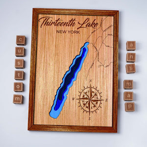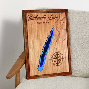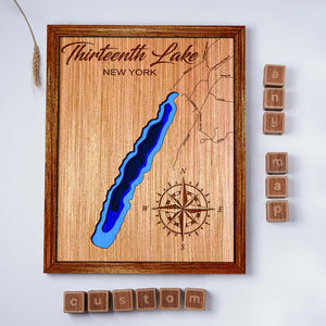 Custom Thirteenth Lake New York Topographical Map, 3D Lake Map, Lake House Decor