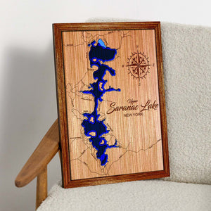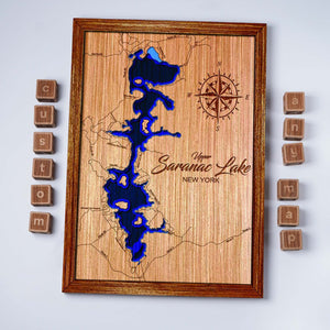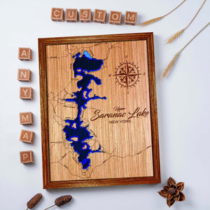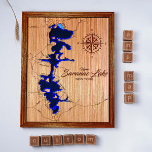 Custom Upper Saranac Lake New York Topographical Map, 3D Lake Map, Lake House Decor