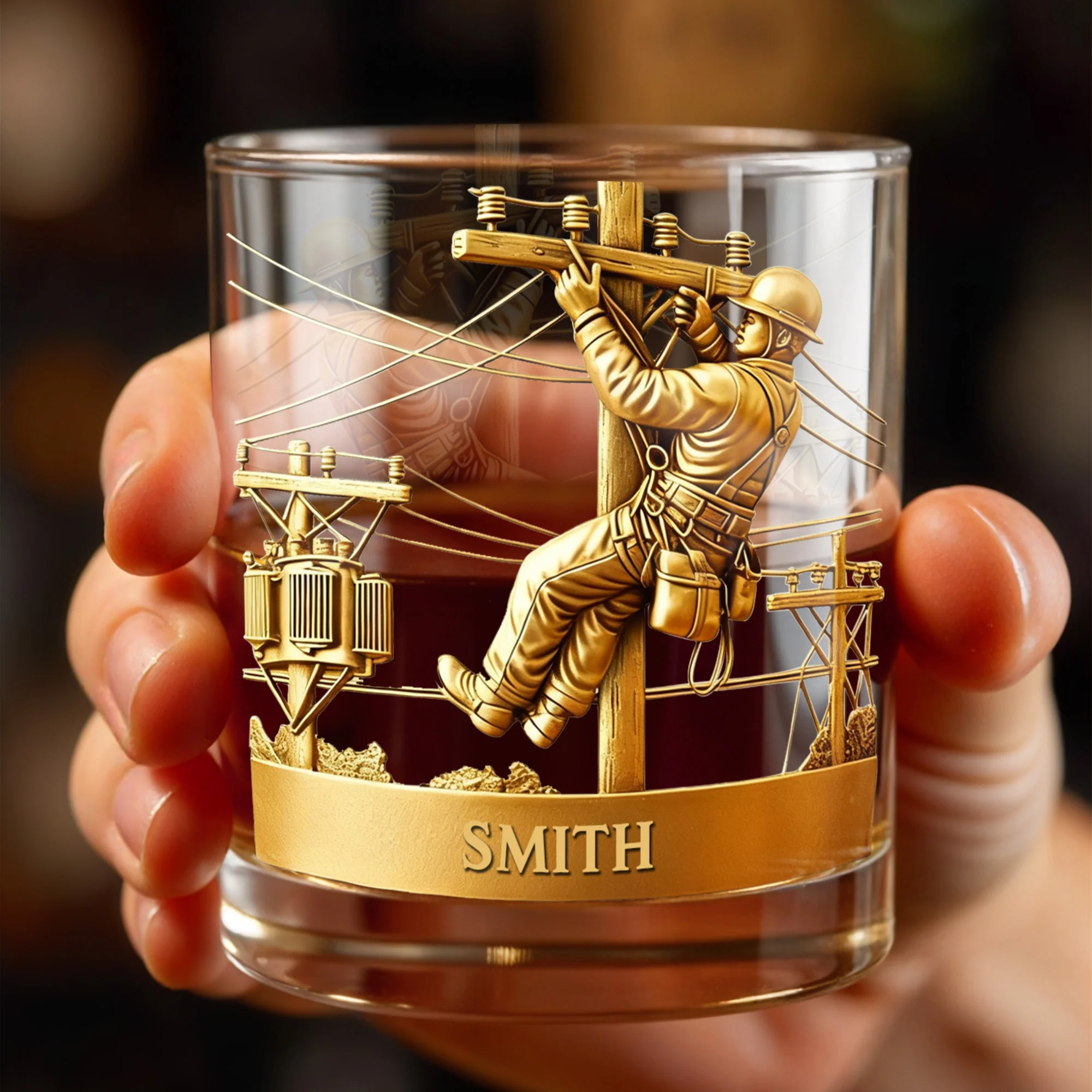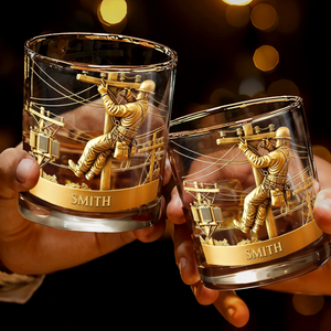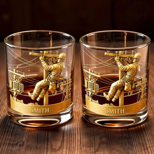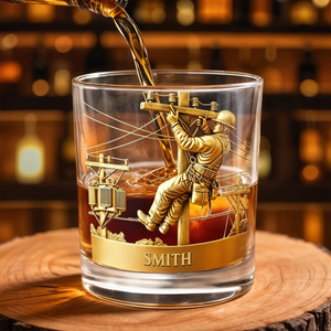 Customized Lineman, Utility Pole, Wires, Personalized Custom Whiskey Glass, Gift For Linemen and Utility Workers