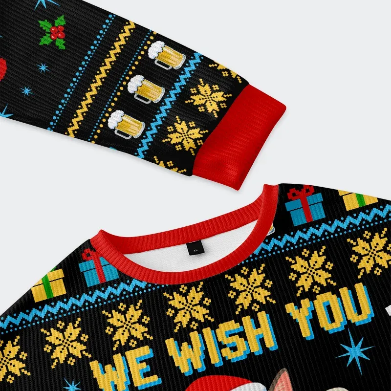 Cute Cat Drinking Beer Funny Ugly Sweater, Ugly Xmas Sweater, Christmas Ugly Sweatshirt