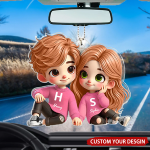 Cute Couple Sitting Together Acrylic Ornament, Keychain For Couple, Cute Couple Keychain, Couple Valentine Gift