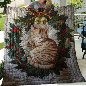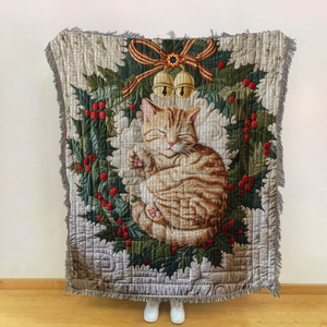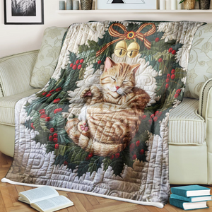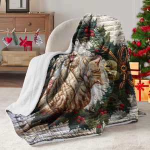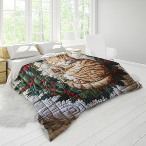 Cute Ginger Cat Christmas Blanket, Bedroom Decor, Gift For Cat Lovers