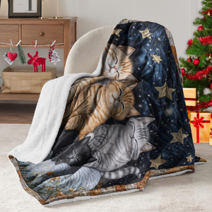 Cute Kitty Christmas Blanket, Bedroom Decor, Gift For Cat Lovers