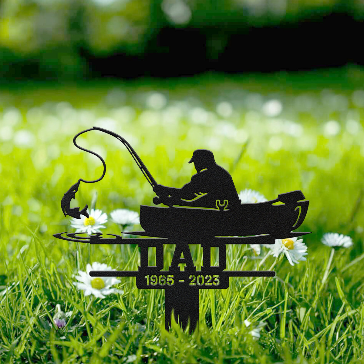 Dad Fishing Metal Memorial Plaques, Metal Grave Marker, Laser Cut Metal Signs, Metal Garden Stakes