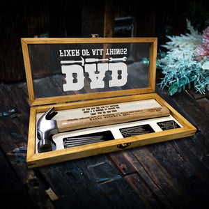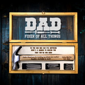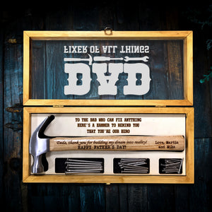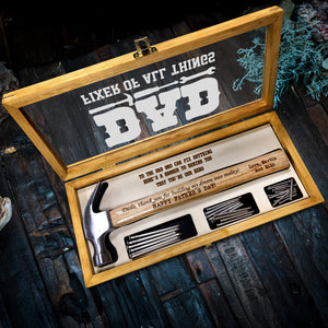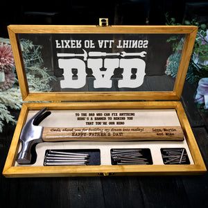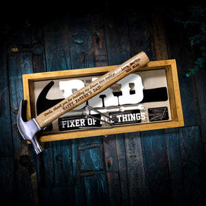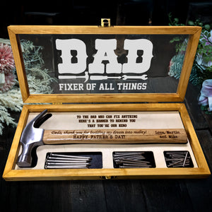 Dad Fixer Of All Things Wooden Engraved Hammer with Wood Box, Framing Hammer, Father's Day Gift