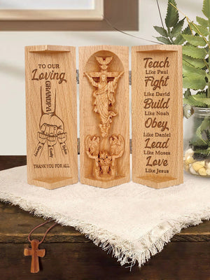 Dad Thank You, Personalized Openable Wooden Cylinder Sculpture of Jesus Christ, Christian Gifts