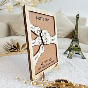 Dad We Love You Hand Bumps Custom Kids Names Personalized Wooden Plaque, Father's Day Gifts