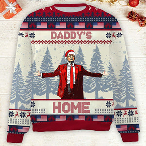 Daddy's Home Funny Humorous Trump2024 Christmas Ugly Sweater, Funny Political Shirt