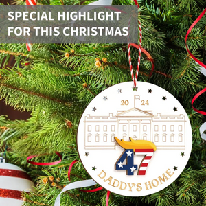 Daddy's Home Trump2024 2-Layer Wooden Ornament, 47th President Christmas Ornament