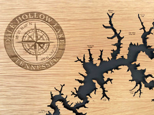 Whether it’s for you, or a gift for a loved one, let us help you cherish your favorite lake memories with this Dale Hollow Lake custom engraved map! Hang this artistic wooden map on your wall at home, in your cabin, your business, or your rental property. Or display it as coffee table art in your lake house, houseboat, cabin, or home. It’s a great conversation piece and a great reminder of your favorite place on the planet!
